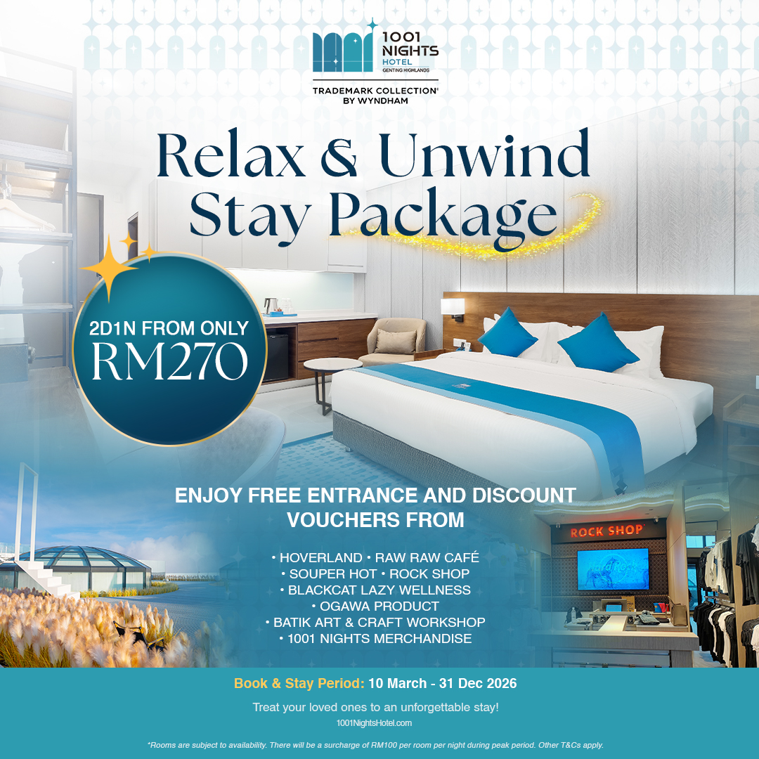 Welcome to a world where dreams blend with reality. At 1001 Nights Hotel, every moment is crafted to spark wonder and curiosity. Perched high at 6000 feet above sea level in the serene Genting Highlands, our hotel offers a gateway to an extraordinary escape.